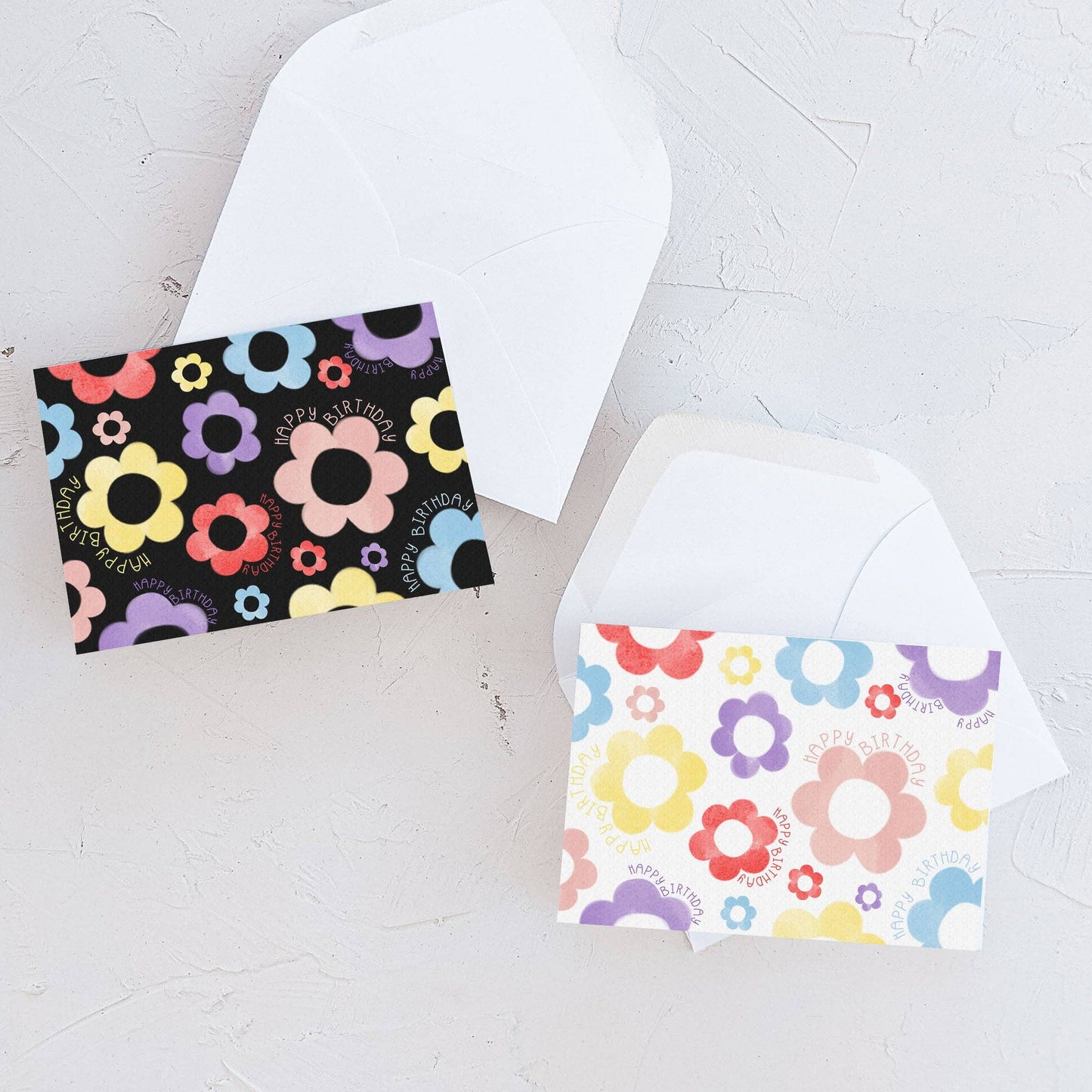 Flowers always spread frivolity! Our Flower Birthday mini card is no different. Joyful multi-coloured hand illustrated flowers, in various sizes, decorate the front of this art illustration card. The size of this cute card is 3.5" x 2.5" , allowing it to fit gift cards inside neatly and attach to a well chosen bouquet or gift. Our vibrant floral mini card is sure to bring feelings of fun to its recipient. This outgoing design is also available upon a white background.