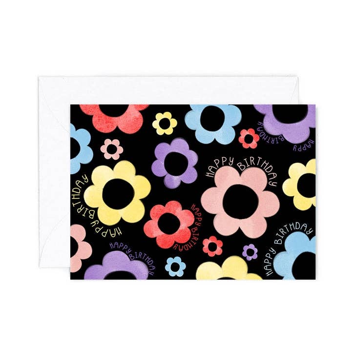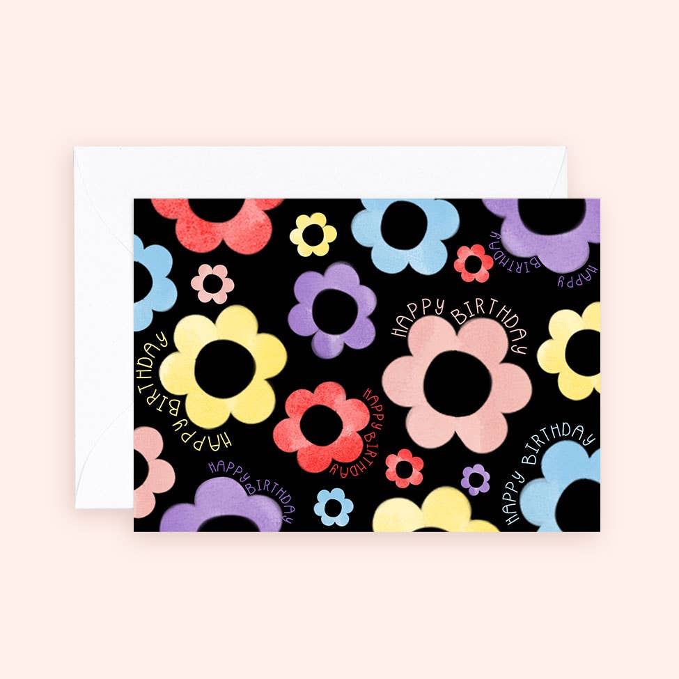 Almeida Illustrations - Mini Card - Birthday Flowers - Black Greeting Card